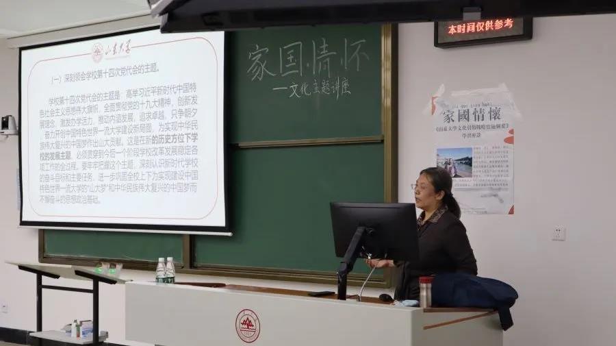 谷健辉以亲身深入贫困山区、修缮古乡村的个人经历为例,具体展现了家国情怀在个人生活中的影响,鼓励各位同学积极参与到“服务山东,服务社会”中去,引导同学们深入理解文化引领战略。