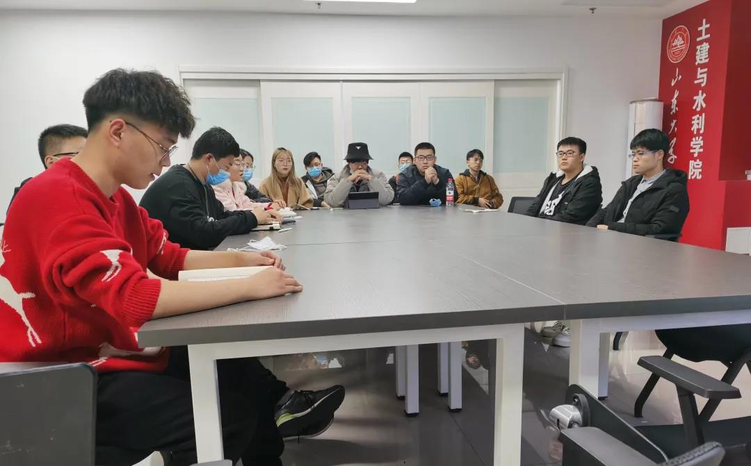 本科生第一党支部副书记郭章潮主持会议,全体正式党员、预备党员参会。