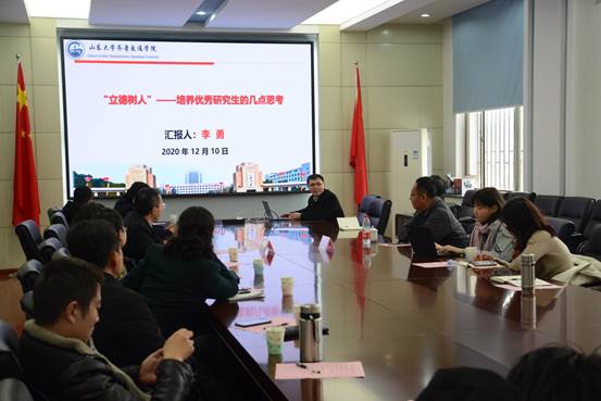 学位办主任徐先蓬和齐鲁交通学院博士生导师李勇分别作了主题为“导师文件解读及案例讲解”和“浅谈工科研究生培养过程中的‘言传身教与立德树人’”的报告,“两院一中心”研究生导师参加会议。