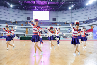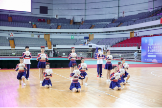 参加啦啦操比赛以来的最好成绩。并在下午的篮球比赛中为在球场上挥洒汗水的篮球运动员进行表演,加油助威。
