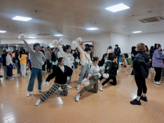 整个训练过程中,参与啦啦操比赛的每一名成员都积极配合,互相帮助,在排练之余巩固练习,加强记忆。指导老师也尽心尽力的向同学们传授经验,细心地为同学们规范动作,精心为同学们设计队形。研会的工作人员也为队员们的训练做好了后勤保障工作,共同为了能呈现更好的效果而努力。
