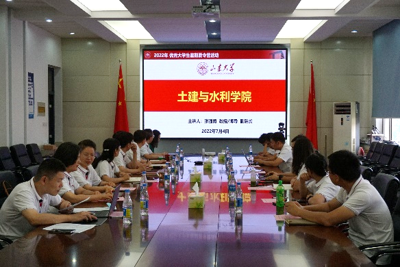 7月4日上午,2022年全国优秀大学生暑期夏令营开营仪式在千佛山校区水利楼第一会议室顺利召开。受疫情影响,营员们并没有来到现场,开营仪式全程通过腾讯会议平台进行。此次开营仪式由学院副院长张强勇主持,院长张庆松、副院长王培军、党委副书记辛帅、副院长毛德强、各系(中心)主任、书记以及优秀导师代表等出席了活动。