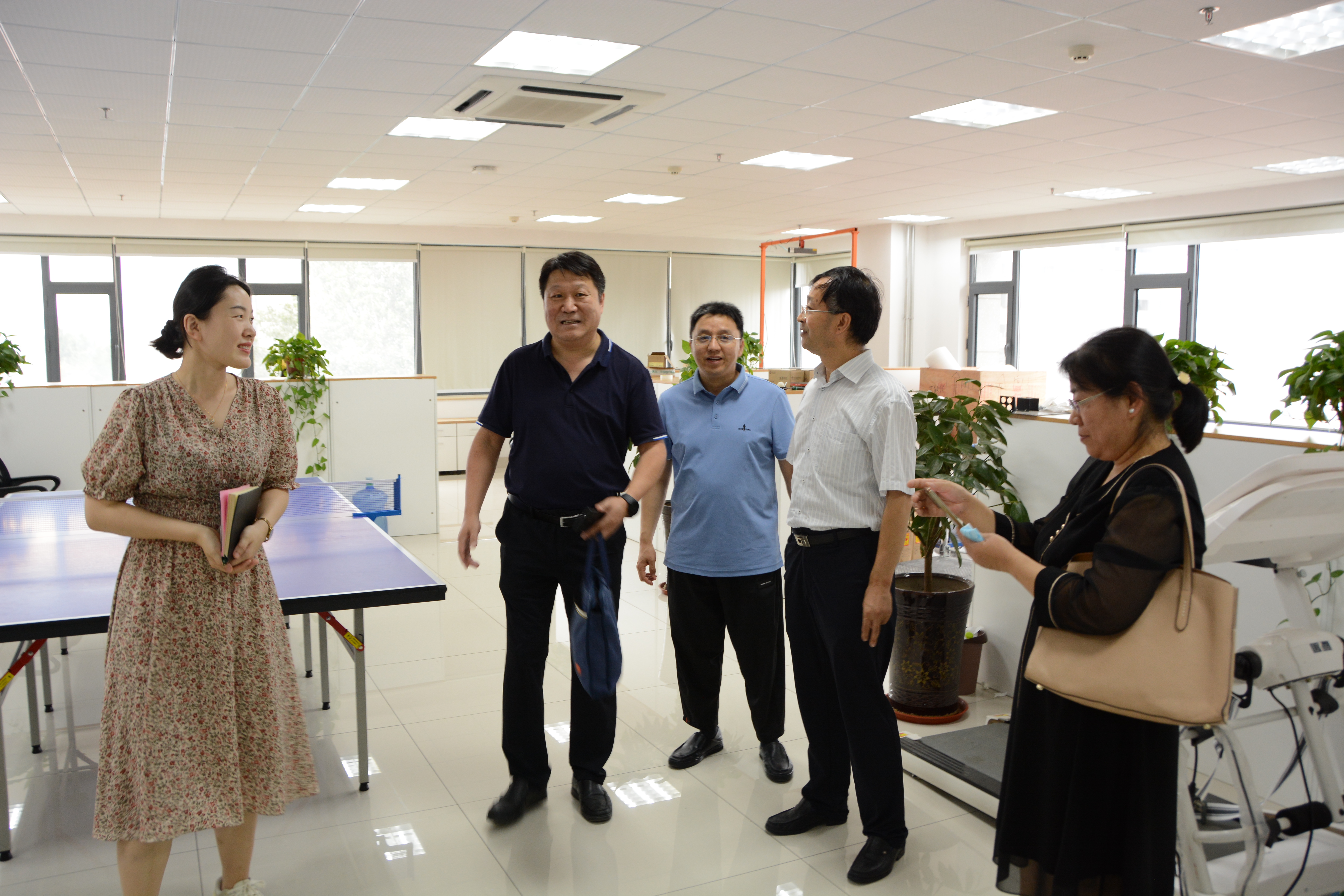 7月22日下午,山东省住房和城乡建设厅节能科技处二级调研员冯睿、科长张亚可,山东省住房和城乡建设发展研究院副院长张少红、科研管理副主任刘启明一行4人来到山大智能建造中心开展工作调研。