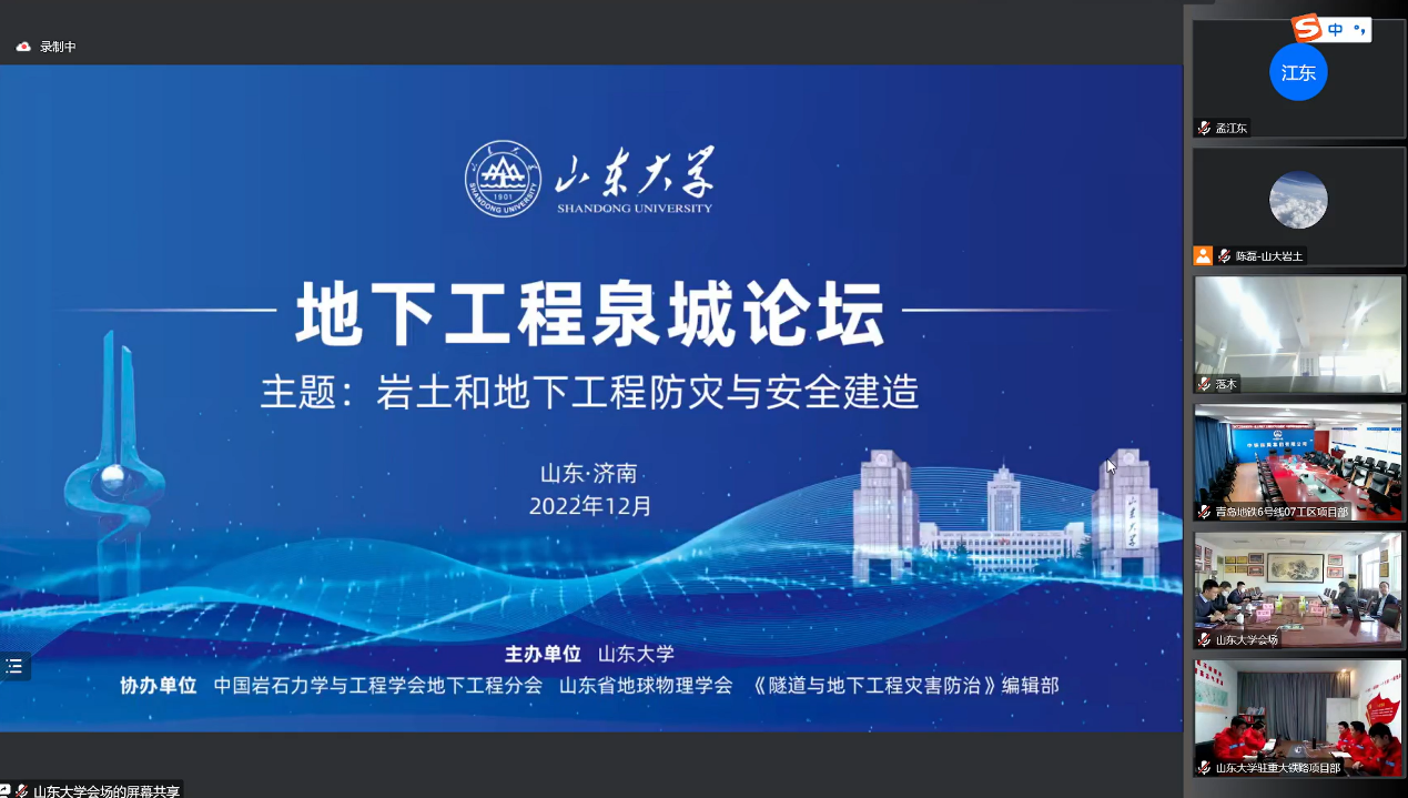 主办,中国岩石力学与工程学会地下工程分会、山东省地球物理学会及《隧道与地下工程灾害防治》编辑部共同协办的“第二届地下工程泉城论坛”于线上举办。