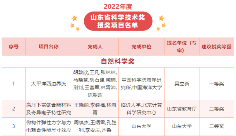 手机比分-win007手机版 工程力学系王炳雷副教授作为第二完成人的成果“微构件弹性力学与力电耦合性能尺寸效应”荣获2022年度山东省自然科学奖二等奖。