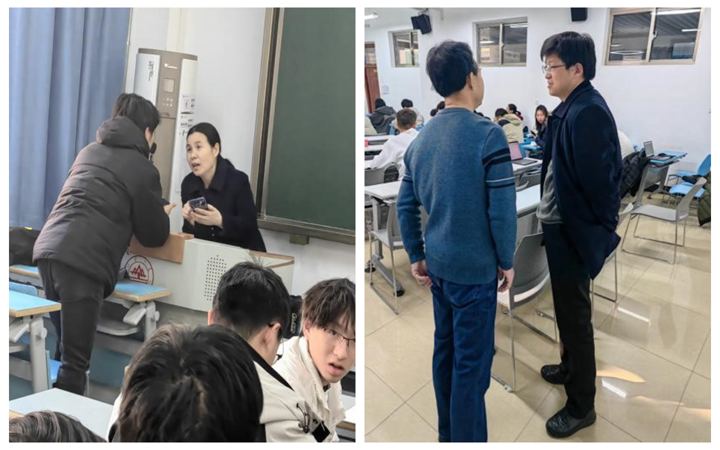 2月26日新学期第一天,为全面了解新学期课堂教学工作开展情况,强化学院教风、学风建设,学院相关领导、校院两级督导员和青年教师深入教学一线,实地观摩及督导,了解新学期教学开展情况。