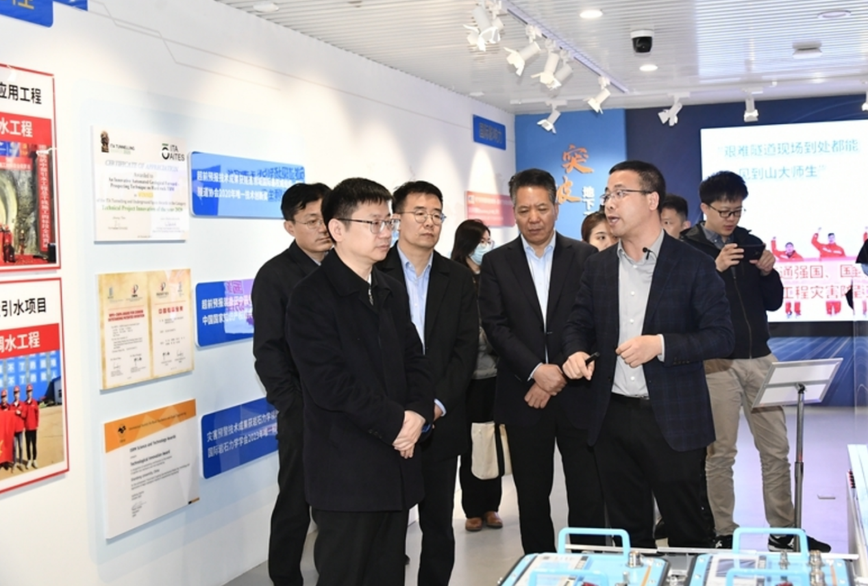 栾宗涛一行调研参观了土木工程学科地下工程灾害防控展厅,听取了隧道超前地质预报自主装备研发情况介绍,观看了岩溶管道高压大流量突涌水封堵材料注浆模拟实验,了解了win007手机版