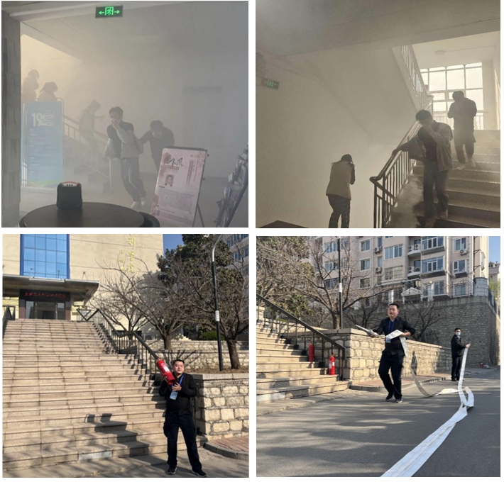 演练活动中,工作人员现场模拟楼内发生火灾的场景,发现火灾后,立即启动消防预案,组织引导楼内师生,按照安全指示有序逃生。随后,学院师生一起学习了干粉式灭火器和消防水带等器材的使用方法,切实增强了消防技能。