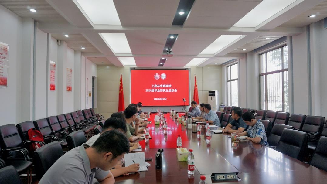 于千佛山校区水利楼211会议室召开2024届毕业研究生座谈会,学院院长张庆松、各系主任及11名即将毕业的研究生代表参加会议,座谈会由党委副书记辛帅主持。