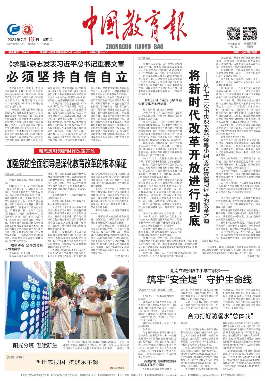 7月16日,《中国教育报》第1版、第2版发布文章《加强党的全面领导是深化教育改革的根本保障》,文章中报道手机比分