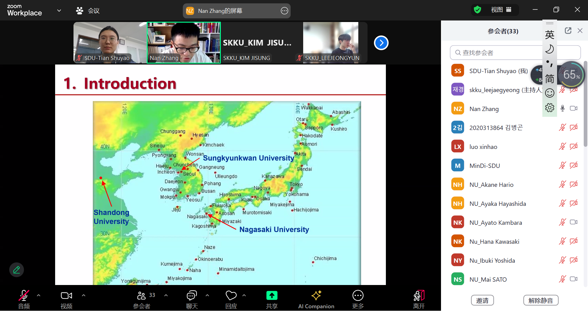 8月27日下午,本次混合交换项目国际暑期夏令营汇报展示及结业仪式在长崎大学进行。汇报分为活动收获总结与专题研讨汇报。各小组依次发表活动感想,后针对洪水、地震等自然灾害的内涵、成因、后果及预防措施进行汇报交流。中、日、韩三国高校代表通过线上、线下方式出席结业仪式并做总结发言。最后,韩国成均馆大学Kyung Soo Jun(田俊秀)教授为所有参与学生颁发结业证书,祝贺同学们顺利完成此次混合交换项目夏令营。