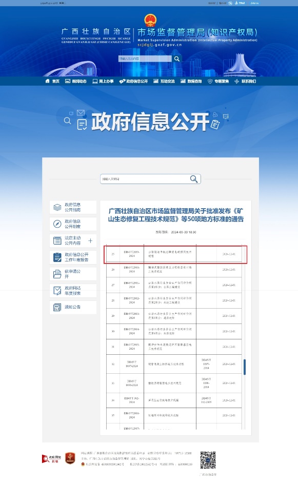 近日,广西壮族自治区市场监督管理局批准发布了《公路隧道半航空瞬变电磁探测技术规程》(DB45/T 2899-2024),该地方标准已于2024年12月1日正式实施。