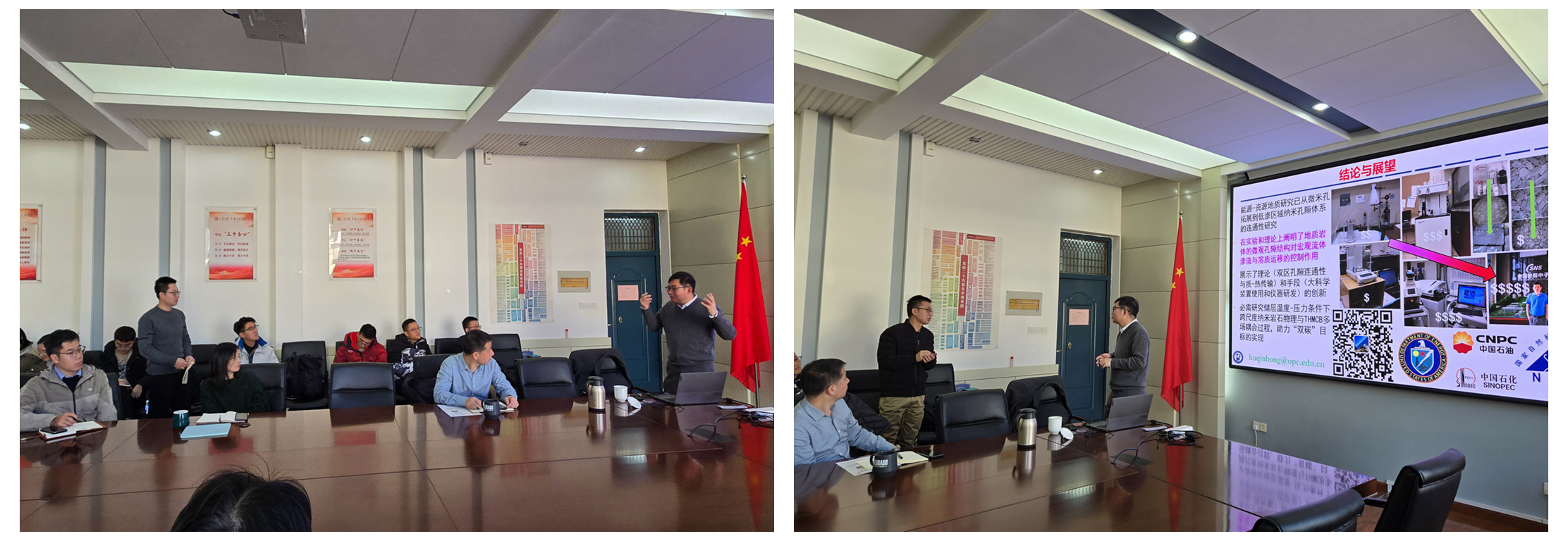 活动伊始,毛德强对胡钦红教授表示热烈欢迎,并向参会师生介绍胡钦红教授的研究领域及学术成果。胡钦红教授介绍了自己在土壤农化、土壤环境化学、污染物水文地质等领域的学术背景与研究经历,以及在国内外多所知名高校与科研机构的任职情况和所获荣誉。随后,他详细阐述了其研究团队在能源地质与环境地质领域的研究方向与成果,如页岩油气储层“五性”评价、热-流-力-化-生耦合过程等,展示了团队在纳米孔隙岩石物理、基质-裂缝相互作用等方面取得的突破性进展。