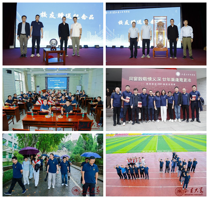 会议中,2001级土木、水利专业校友分别向学院捐赠纪念品。校友们对学校和学院的发展感到无比自豪,纷纷表示今后一定会继续关注学校和学院的发展,在各自岗位上发扬山大土建人敢于拼搏、敢于担当的精神,不负母校期望、努力增光添彩。