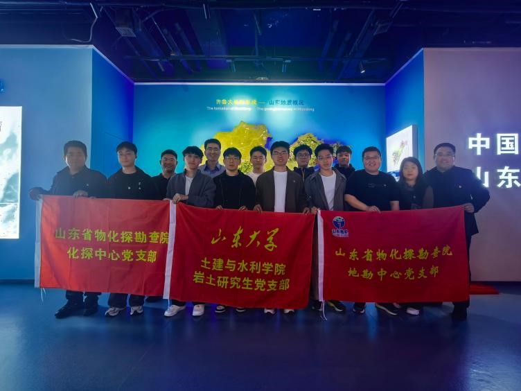 岩土研究生党支部与山东省物化探勘察院地勘中心党支部、化探中心党支部,在山东地矿科技馆联合开展“感知地球脉动,传播科学理念”支部共建暨地质科普志愿服务主题党日活动。三方党支部党员、入党积极分子共20余人参加活动。