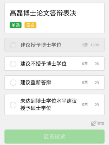 图 4 答辩委员会无记名投票