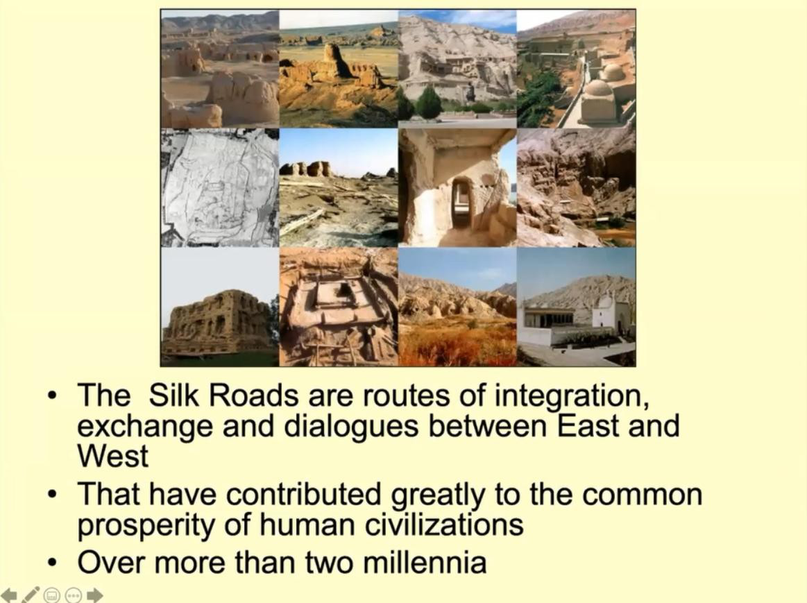 课程第二天,Roland LIN 教授通过丝绸之路案例详细介绍了遗产线路的保 护范围和涉及的众多节点,对几个关键问题点进行了深度解析,并提及了世界文 化遗产路线产生的积极影响和面临的许多挑战。Roland LIN 教授以参与实际工 作的亲身体验展示了世界文化遗产路线保护工作的内容,加深了同学们对世界文 化遗产保护的认识,增加了同学们对世界文化遗产保护的兴趣和责任意识。