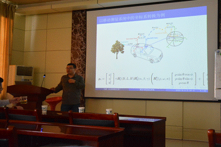 韩勃老师简单地介绍了石波老师的研究方向和最新成果后,石波老师便开始了本次汇报。汇报主要从四个方面来展开,第一部分是关于惯性技术的定义,这是一门涉及多学科交叉的高新尖端技术,又涉及现代武器系统中的一项核心技术;第二部分是关于惯性导航系统的理论介绍,石老师以移动测量系统中的坐标系转换为例,从牛顿经典力学的角度入手,介绍了惯性导航系统中的两个主要器件——陀螺仪和加速度计;第三部分是惯性导航系统的建立,加速度计和陀螺仪分别起到测量单轴的比力和测量一个轴向转动角速率的作用,采用了IMU作为导航系统的传感部件,石老师以二维惯性导航为例讲解了惯性导航系统工作的原理;第四部分是组合导航的意义与应用,具有较高的短期测量精度的INS和具有长期精度的GPS具有较好的互补特性,二者集成后可输出高频率的导航参数信息,并且在长、短期的导航过程中均具有较高的精度。论坛最后,石波老师从惯性导航系统的应用角度讲解了多平台测量系统在公路基础建设中的各种应用,并对学生们提出的问题进行了详细地解答。