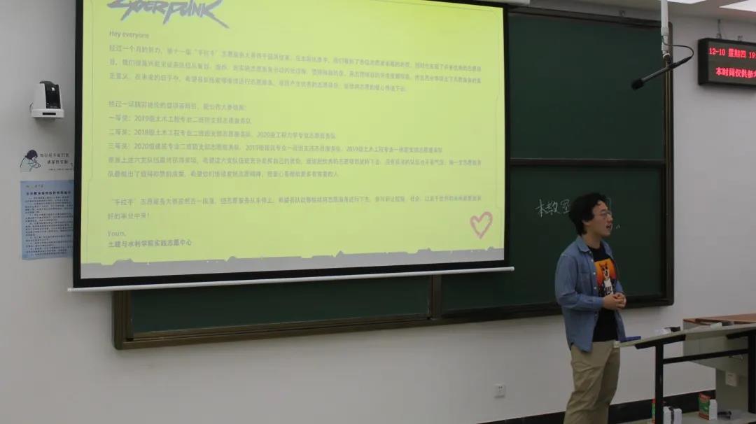 志愿服务部部长马湛涛主持,获奖班级团支书参与。