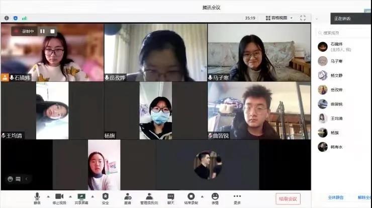 “相约山大,感恩母校”山东省449队伍举行线上活动启动仪式。队长石镜炜集合队员并主持会议,全体队员参与会议。本次会议主要由寒假宣讲活动介绍、队员信息沟通、队员任务分配三部分构成。
