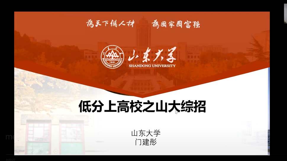 最后,门建彤介绍了山大的招生政策。其中,他详细介绍了山大的几个特殊评价招生制度—综合评价招生作为一条低分上高校的途径,受到广泛高三学生的重视。门建彤就综合评价招生的面向对象、招生流程以及如何准备做了详细阐述,高三学子受益匪浅,后期还有学生单独咨询。