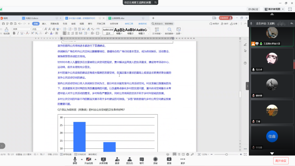 乡村振兴战略背景下的公共空间建设社会实践调研团于线上召开社会实践问卷分析会议。本次会议由队长王孟晖主持,全体团队成员参加。