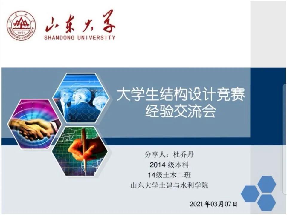 于腾讯会议室举办了第十四届结构赛线上经验分享会。此次经验分享会议由学科部赵欣宇主持,第十届全国大学生结构设计竞赛国家二等奖获得者、2014级毕业生袁酊、杜乔丹、白振宇作为嘉宾参加会议,分享参赛经验。