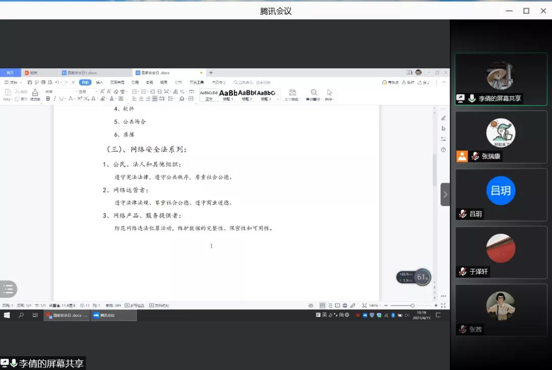本科生第一党支部土木党小组于线上开展“国家安全记心间”主题会议。会议由张瑞康同志主持,全体党员、预备党员参加。