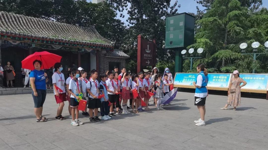 翘角重檐,斗拱承托,在巍峨壮观的解放阁下,团队成员将济南战役的起承转合娓娓到来,用饶有趣味的方式,将故事戏剧化。在铭心公园,团队成员向孩子们介绍了邓恩铭和王尽美的革命故事,把革命者“追求真理,献身革命”的伟大精神“拿出来”,通过细致入微的描述、生动有趣的互动,给孩子们以真实的体验。