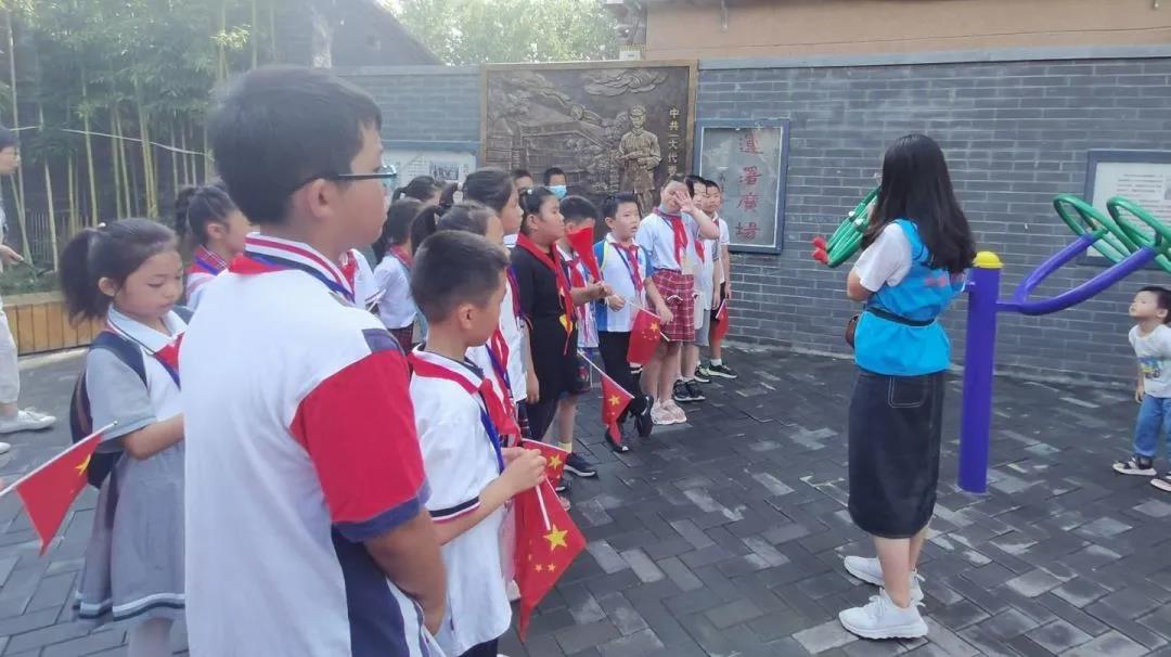 在本次研学的终点,初心广场。孩子们亲自上阵,依照字牌提示向大家介绍革命先烈刘谦初,以小讲解员的身份,在讲解中感悟刘谦初“恪守正道,一心向党”的不屈意志。经过这次研学,孩子们收获良多,在结束之前,大家在初心广场一起合唱了一曲《国际歌》,歌声里满是对党和革命先烈的崇敬与向往。