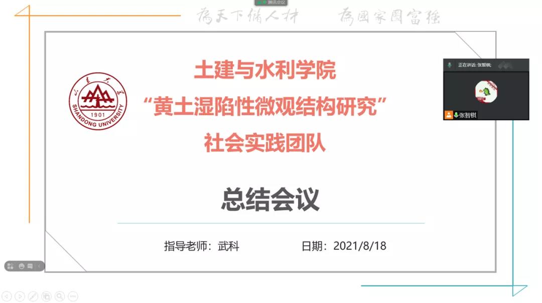 “黄土湿陷性微观结构研究”社会实践团队进行最后一次会议,对此次社会实践进行总结。会议由团队队长张智棋同学主持,全体成员参加。