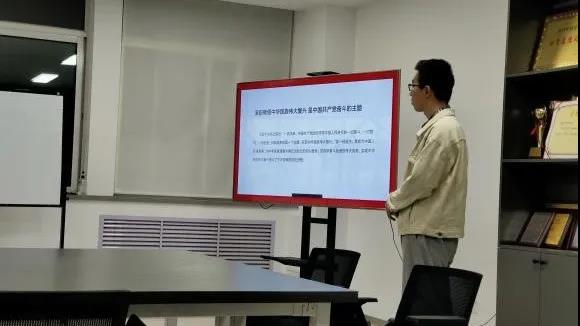 路丹妮从“党支部是党最基本的组织,是党全部工作和战斗力的基础”这一论述出发,解读“四个全面”、“四个伟大”两个党建工作中的关键词,围绕推动高质量发展把准提高党的建设质量的着力点,并进一步阐释了“第二个百年奋斗目标”,强调我们应该坚定理想信念,不忘初心、牢记使命,迎难而上、锐意进取,努力做好党支部工作。