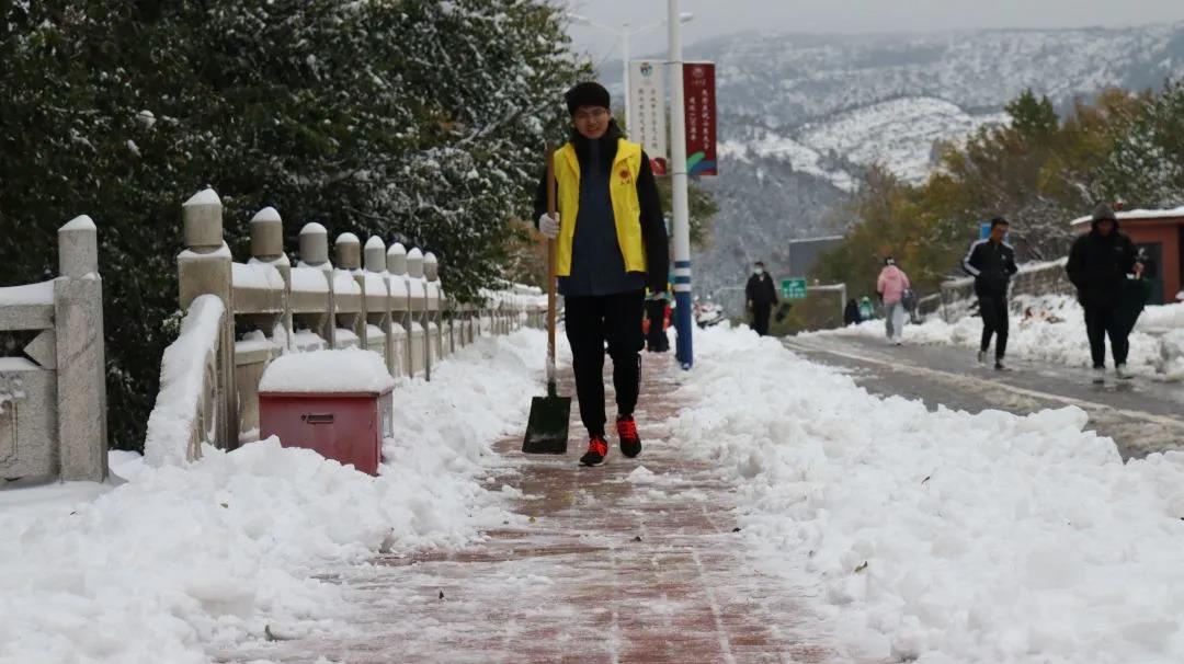 兴隆山校区白玉兰路与实验楼周围道路分别开展扫雪志愿服务活动。