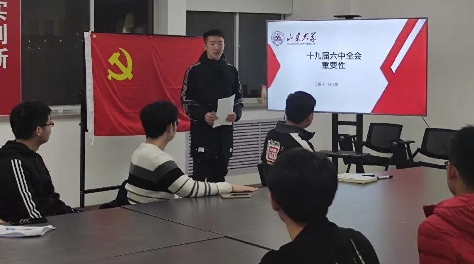 王家昌、李倩、赵子微、马天昊依次从不同角度介绍党的十九届六中全会精神。王家昌同志强调,全会指出了中国共产党百年奋斗的历史意义,一百年来,党领导人民进行伟大奋斗,在进取中突破,于挫折中奋起,从总结中提高,积累了宝贵的历史经验。