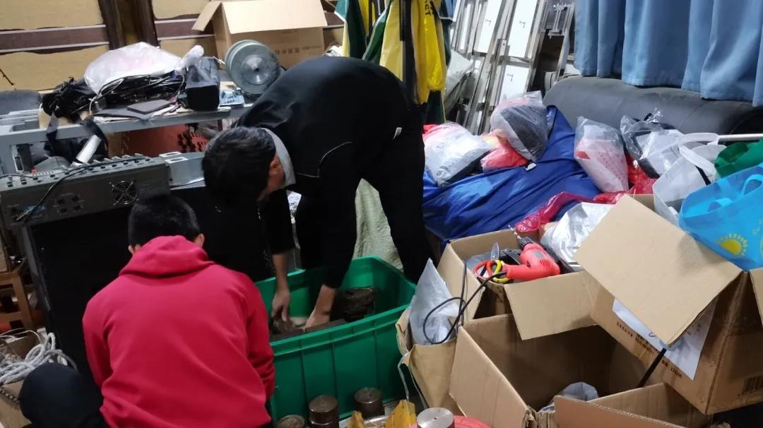 学生组织秘书处部长唐芳菲、马辉带领刘雯顺、陈妍彤等8名干事于实验楼528仓库开展物资清理与场地整改活动。