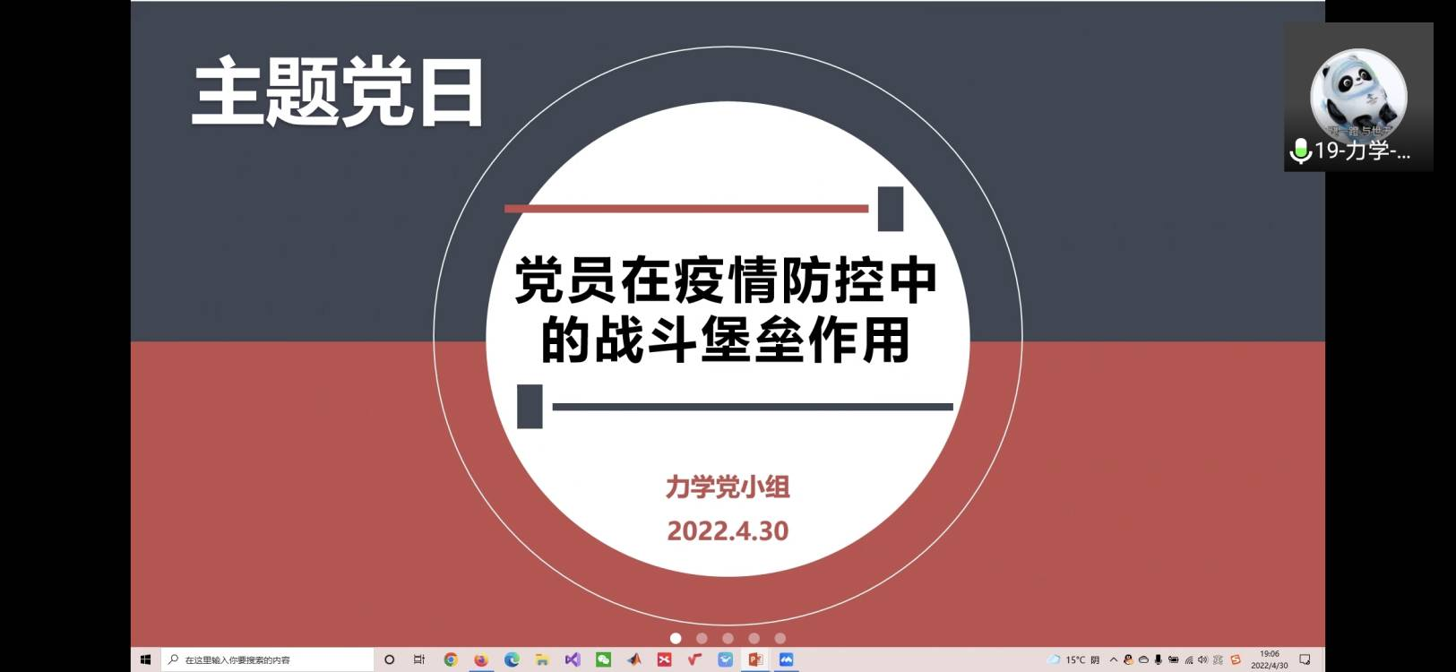 本科生第二党支部召开“党员在疫情防控中的战斗堡垒作用”主题党日活动,力学党小组主持活动,第二党支部全体成员参加。