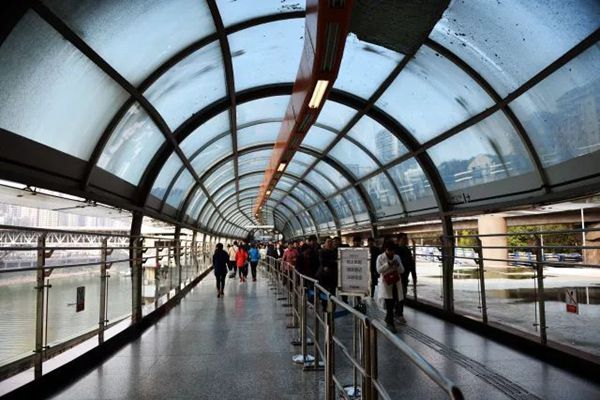 早八时许,不顾四十度高温难耐,实践团队全体成员在铜元局集合。根据调研计划,队长明晰此阶段任务重点,指导队员开展活动,并明确了此次活动的路线,即从铜元局出发,经过两路口站和牛角沱站,最后到达重庆北站。在参观调查过程中, 实践团队了解到,铜元局站的出口处向外眺望是交错纵横的高架桥,它们连接各方大道又向更远处延伸,层层叠叠,构成了山城魔幻立体的交通的缩影。它倚靠着菜园坝长江大桥,简约却不失美观,是整个线路中耗资最少的站点。两路口站着重体现老重庆记忆,沿着站厅前行,各种老重庆元素随处可见。车站进口,“百年物品”文化墙夺人眼球。“大哥大”手机、红岩牌缝纫机、蓝舞牌录音机无不把旧时光重现,天府可乐、山城牌啤酒无不述说重庆故事。重庆百年的林林总总仿佛就在队员们的眼前。在具有“时光隧道”美称的牛角沱站,二号线和三号号线垂直相交,长长的换乘通道就是一条观景走廊。从走廊两侧向外,一侧是奔腾不息的嘉陵江,一侧是盘旋的立交桥与城市万象。而在重庆北站站台墙面上是一幅巨大的“导游图”,由此无不感受到了重庆人民对外地人的热情与欢迎。