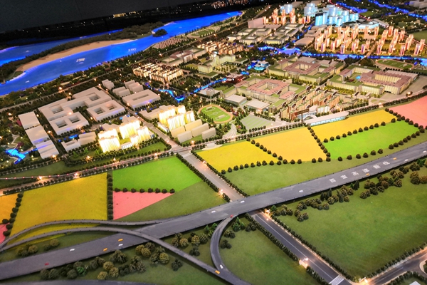 在沙盘前,我们清晰、直观地了解到创新港的整体布局以及最后呈现出来的效果图。创新港位于西咸新区沣西新城范围内的渭河南岸,周围的两条高速线路和地铁5号线的两个站点把创新港和西安市区高效地连接了起来。整体布局上分为四大板块,即科研板块、教育板块、转孵化板块和综合服务配套板块。其中的核心区域——科研教育板块,将由西安交通大学来组建工、理、医、社科四大方向23个研究院,容纳12000名研究生和6000名博士生。创新港将现要建设“校区、镇区、园区、社区”四位一体的创新体、技术与服务的结合体、科技与产业的融合体,成为我国高等教育改革的交大样板、中国特色城镇化的西咸样本。