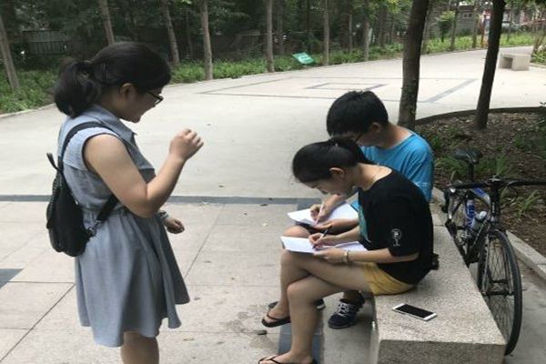 兴隆山校区图书馆前集合,搭乘公交车奔赴英雄山路附近的几个大型社区。因为天气炎热,社区里能采访和咨询到的人数有限,一上午的时间也没有完成几份问卷。在中午的休整中,队长邱雨杭总结了几次碰壁的经验并提出了改进措施。带着新的方式,团队成员精力充沛地投入到工作中去。功夫不负有心人,“拂煦坊”团队共完成问卷53份。