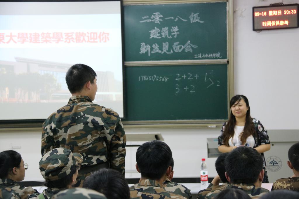 于兴隆山校区教学群楼举办建筑学专业新生见面会,建筑学2018级班主任朱瑞冉主持,建筑学系主任宁荍、建筑系支部书记王金岩及2018级全体建筑学专业学生参加见面会。