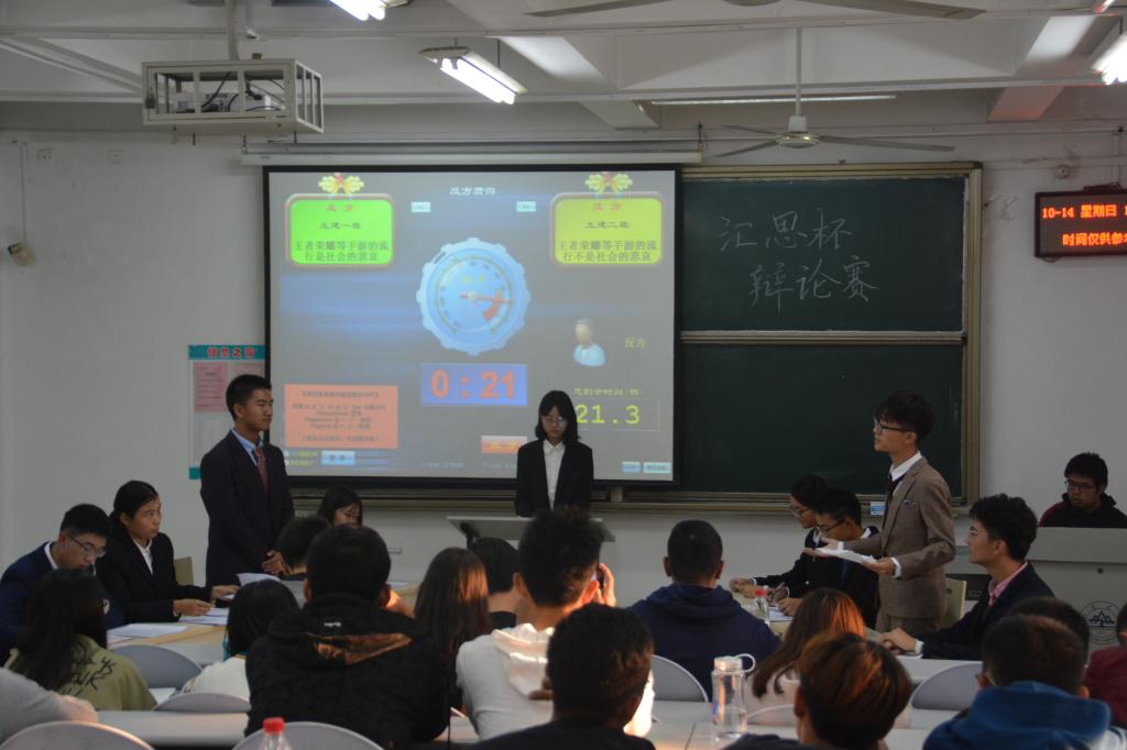 辩论队领队马震林、交通学院辩论队领队陈涵宇及两院资深辩手担任比赛评委,来自六个班级的辩手到场参赛。