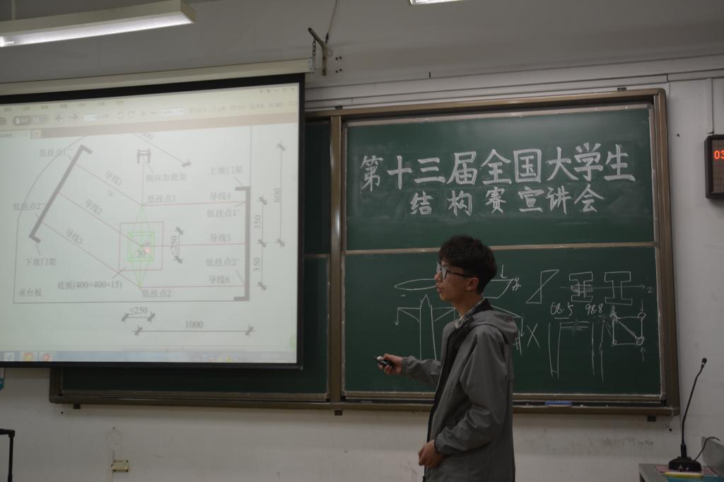 于兴隆山校区教学群楼举办了第十三届全国结构设计竞赛宣讲会。活动邀请了参加过往届结构赛的优秀学生代表刘胜琪、魏玮作为主讲嘉宾,为同学们分享备赛经验。
