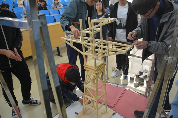 于兴隆山校区讲学堂举办第十三届全国大学生结构设计竞赛校内筛选赛。手机比分