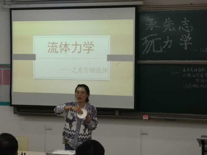 本期活动主要围绕非牛顿流体的认知、鲁伯特之泪的制作、观察卡门涡街三部分内容展开,各主讲人结合现场实验、效果展示等形式进行了深入浅出的讲解。李哲园从动手实验出发,带领现场同学用淀粉和水制作了非牛顿流体,亲身体验其独特性质,在直接的触摸与拍打中,使同学们对遇强则强、遇弱则弱的非牛顿流体有更深的了解。主讲人李浩隆基于现有的科研成果,向大家介绍了鲁伯特之泪的制作方法、研究历史、特性及成因,并演示制作了一颗鲁伯特之泪。当其遇外力重击时,鲁伯特之泪虽然是由玻璃制作的,但没有丝毫损坏,他借此引出了一种观测物体内力的光学方法,介绍了光测弹性力学这一新兴学科。李胜寒、龚陈博、张益通三位同学则借助多媒体讲解展示了卡门涡街的形成与发现过程。不仅使在场同学欣赏到了美丽的卡门涡街,还普及了在生活中如何利用涡街并防止其危害的知识。