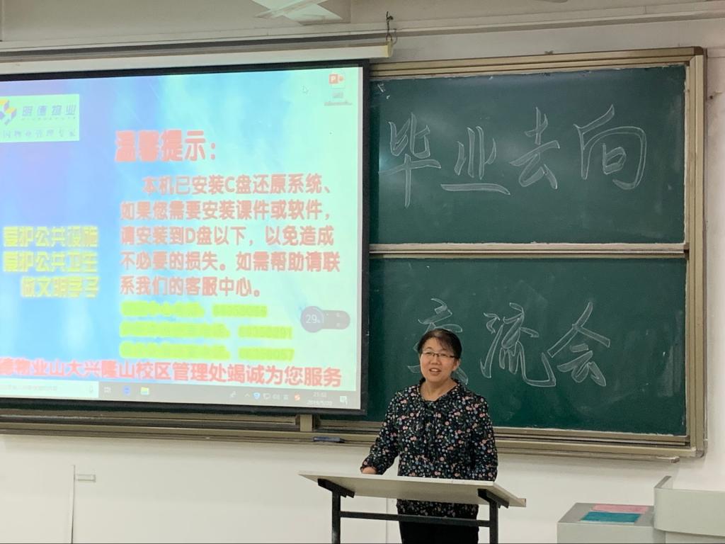 水利系于兴隆山校区教学群楼召开毕业去向分享交流会,本次会议由16级水电班冯路主持,贠汝安老师、于翠松老师以及16、17、18级水利专业学生参加了本次交流会。