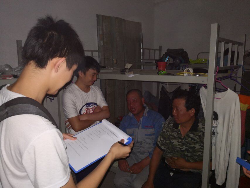 7月5日晚7时,调研团队跟随民工来到世纪大道曼斯特汽车服务旁民工宿舍进行第二次调研活动。此次调研活动旨在进一步了解工人生活、工作以及社会保障问题。本次调研活动由殷建伟、代云飞为主要沟通人员,罗煜旻、程小洪负责收集资料。