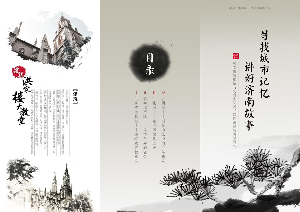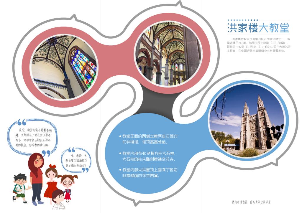 经过讨论,团队成员分别提出四条活动线路,以济南市区内四个著名景点的建筑群为考察对象:芙蓉街-百花洲历史街区、大明湖风景区周边建筑、洪家楼大教堂、老商埠历史街区。团队成员张志伟同学提出,为帮助孩子们更系统地了解古建筑知识,帮助现场讲解活动,大家可以为孩子们设计制作四条活动路线对应的研学手册,将复杂的建筑知识趣化。队长王钰林同济南市博物馆提出此方案,得到了市博老师们的赞同。
