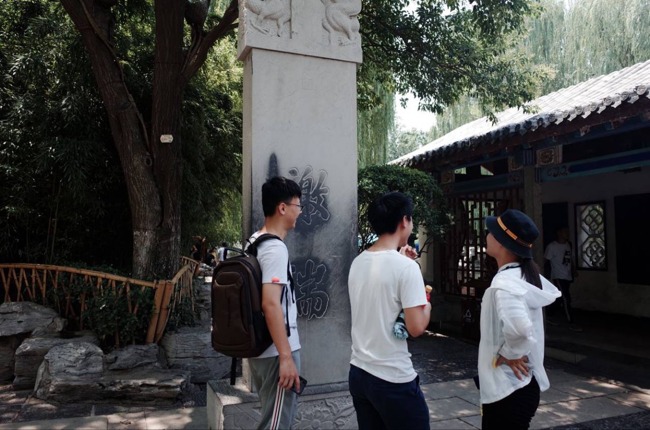 在济南大明湖和曲水亭街等地,团队主要考察了水体景观及其周边环境关系。大明湖景观周边主要是亭台走廊等园林建筑。经过团队的调研分析,大明湖荡漾碧波、清扬风荷等水体景观与周边建筑交相辉映,在空间上层次分明完美结合,在文化上展现了古代文人的诗情画意,在功能上围绕明湖的走廊已经成为了重要休闲生活场所,在场地功能关系上走廊也为观赏景观提供了充足的视角。
