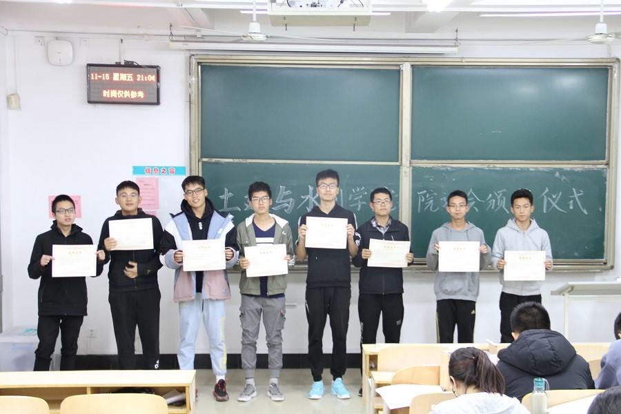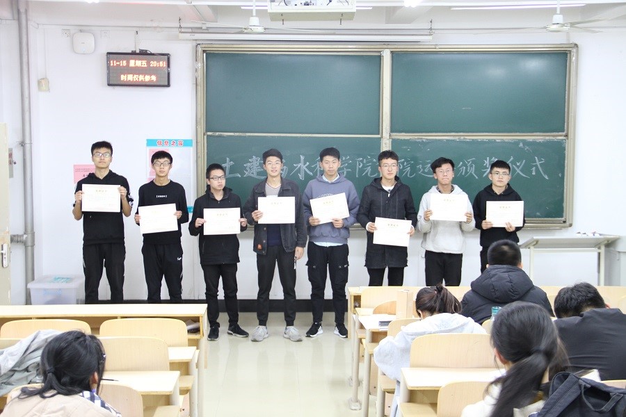 学子不断进取,昂扬向上的青春风采。学院为表彰先进,继续发扬运动员开拓拼搏精神,特颁发奖状和奖品以资鼓励。在颁奖过程中,各项目获奖同学依序上前,张明涛分别为运动员们颁发了奖状和奖品并在现场一同拍照留念。
