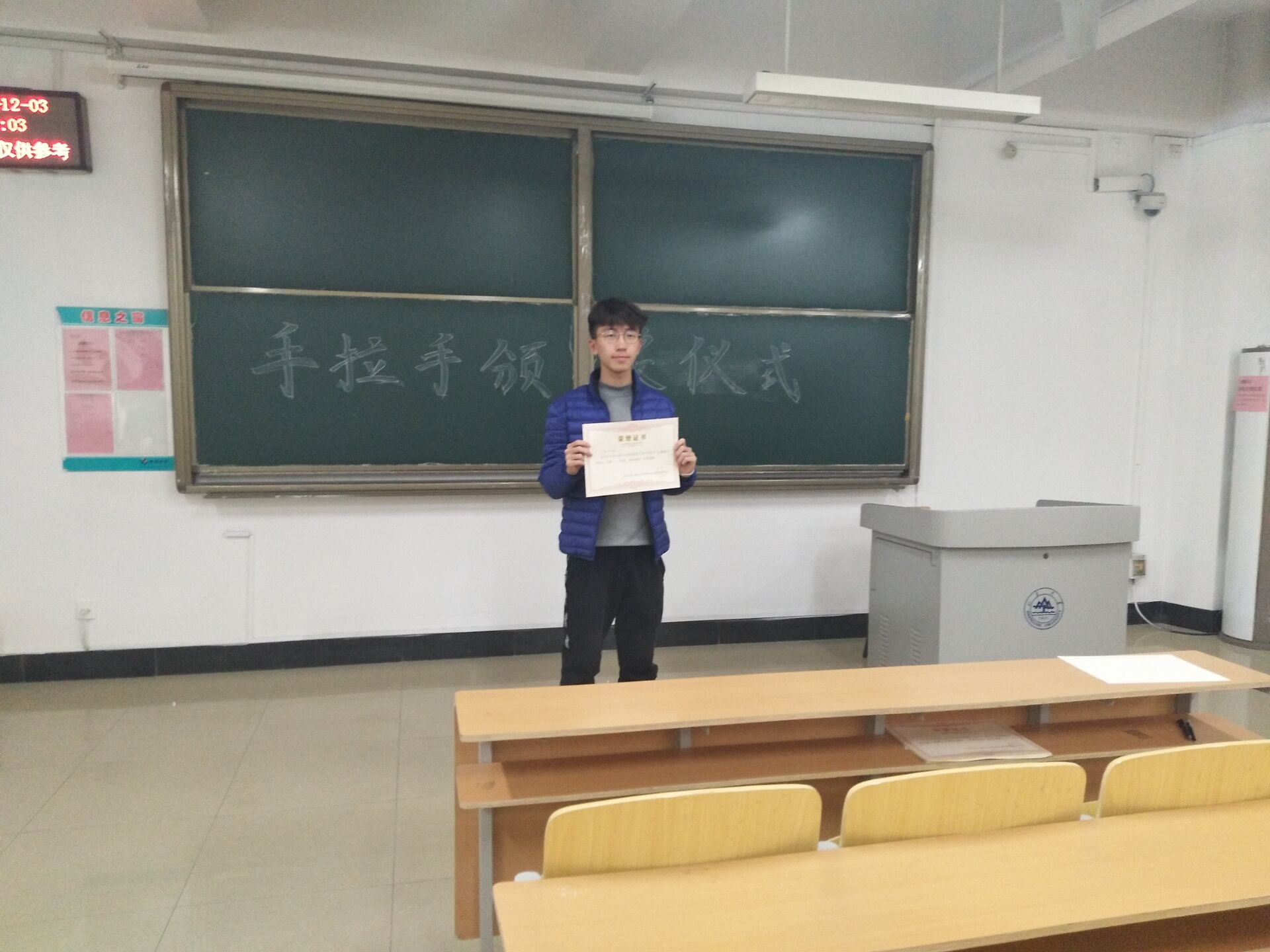 本次手拉手志愿服务活动中,参加活动的班级和个人在多个方面展现出了自己的特色。每个班级用独特的方式,展现出了他们对社会的责任与奉献精神。评委综合活动材料、答辩表现、群众反响和宣传情况后,评选出了班级奖项,随后通过班内推举的方式评选出优秀志愿者。颁奖嘉宾分别为获得奖项的班级和个人颁发了奖状并拍照留念。总结过程中,张瑞康向获奖的班级和个人表达了衷心的祝贺,并希望各班的特色志愿服务活动继续开展,希望大家以“手拉手”活动为契机,将志愿服务持续下去。至此,本次手拉手志愿服务活动颁奖仪式圆满结束。